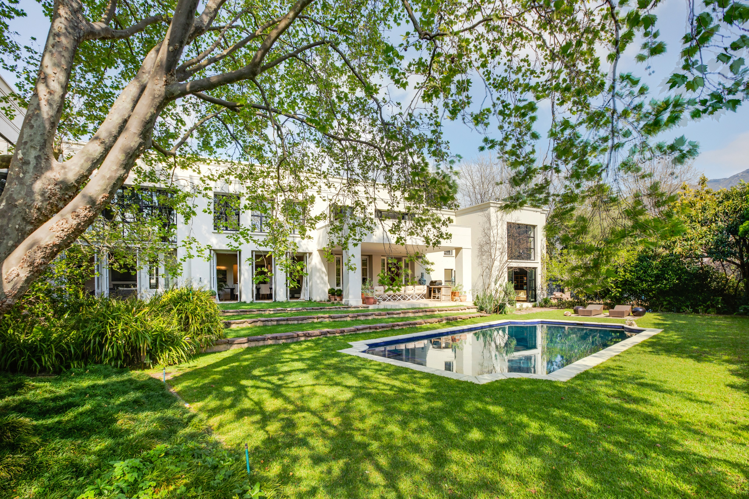 - A tranquil modern three-bedroom villa with mountain view in the serene neighborhood of Bishopscourt, Cape Town